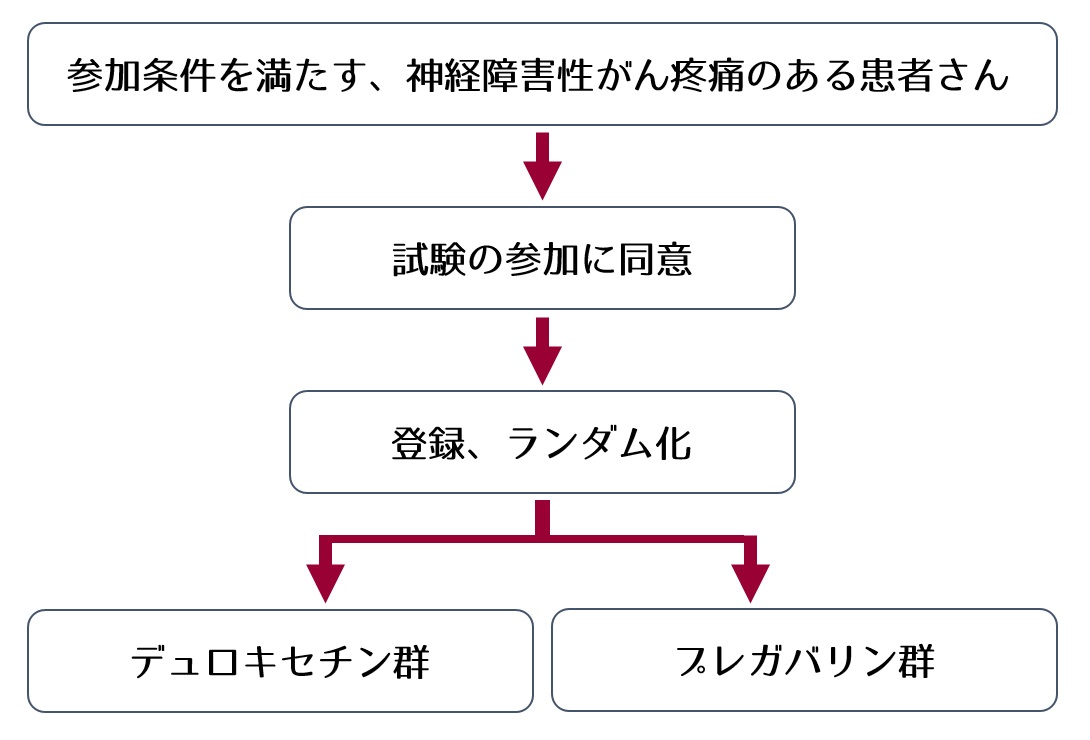 そこで本試験は、非がんの神経障害性疼痛に対してはガバペンチノイド(プレガバリンやガバペンチン)よりも優れた効果を示しているにも関わらず、がん患者さんの神経障害性疼痛に対して、デュロキセチンの使用を支持する十分な根拠がまだ存在しないため、そのエビデンス(科学的根拠)を確立すべく計画させていただきました。